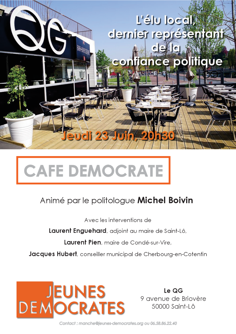 Depuis un an, le mouvement les Jeunes Démocrates, réservé aux 16-32 ans et emmené par Romain Désiré dit Gosset multiplie les actions : « Nous avons distribué des tracts, et proposons régulièrement des Cafés démocrates », se réjouit le jeune professeur de 26 ans, originaire de Cherbourg.
