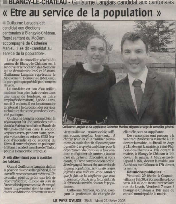 Guillaume Langlais annonce sa candidature sur le canton de Blangy-le-Château