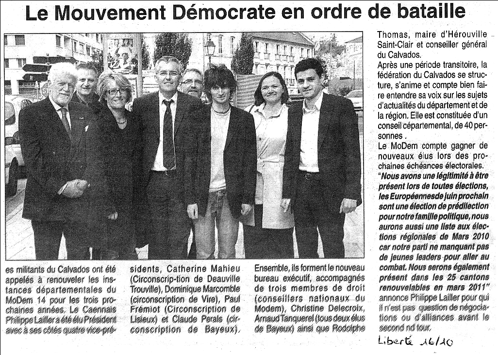 Le président du Modem, François Bayrou, est venu, hier après-midi à Hérouville, rendre visite aux membres locaux de son parti, parmi lesquels le maire Rodolphe Thomas.