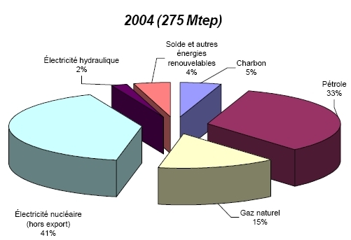 En 2004, le nucléaire représentait 41% du mix énergétique de la France.