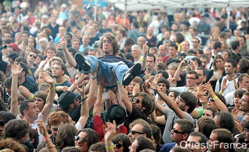 Deux pouces levés pour signifier combien c'est cool qu'un tel festival sorte enfin de terre dans les environs ? Les soucis de réglage du vendredi passés, le public a pris son pied en surfant a d'une scène à l'autre. : Photos Jean-Yves Desfoux