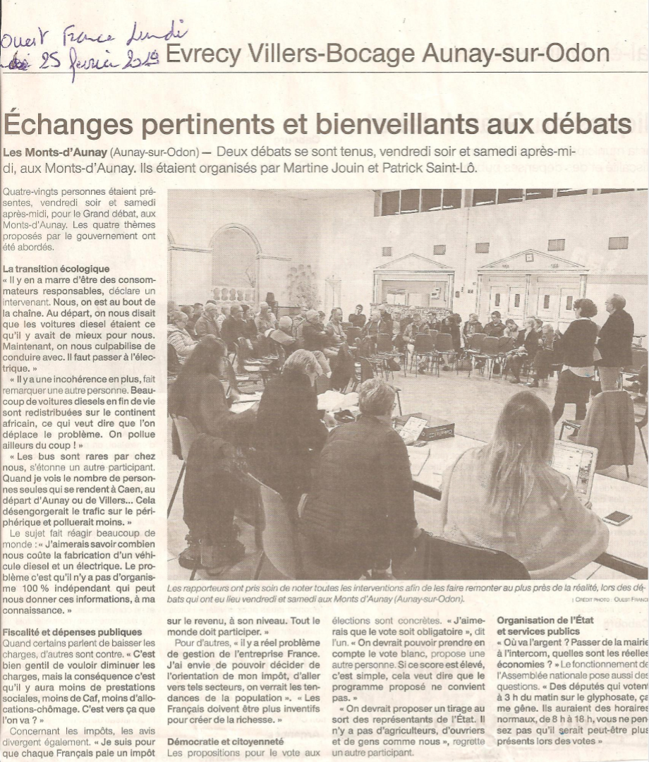 Débat avec Richard RAMOS, député du Loiret participe à l'Assemblée Nationale au projet de loi pour l'équilibre des relations commerciales dans le secteur agricole et l'alimentation saine et durable. En présence de Patrick SAINT-LO, Maire-Adjoint à Aunay sur Odon & Rodolphe THOMAS, Maire d'Hérouville St Clair.