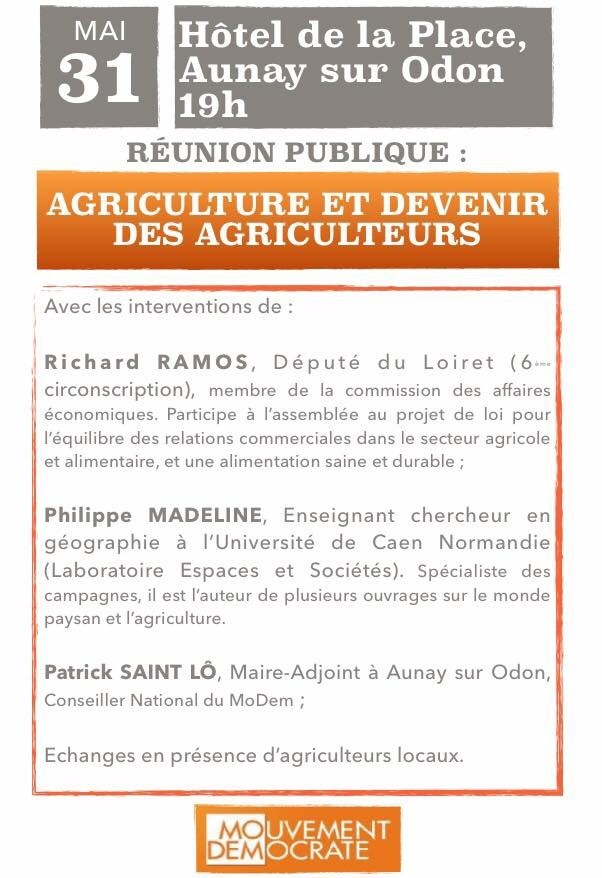 Débat avec Richard RAMOS, député du Loiret participe à l'Assemblée Nationale au projet de loi pour l'équilibre des relations commerciales dans le secteur agricole et l'alimentation saine et durable. En présence de Patrick SAINT-LO, Maire-Adjoint à Aunay sur Odon & Rodolphe THOMAS, Maire d'Hérouville St Clair.